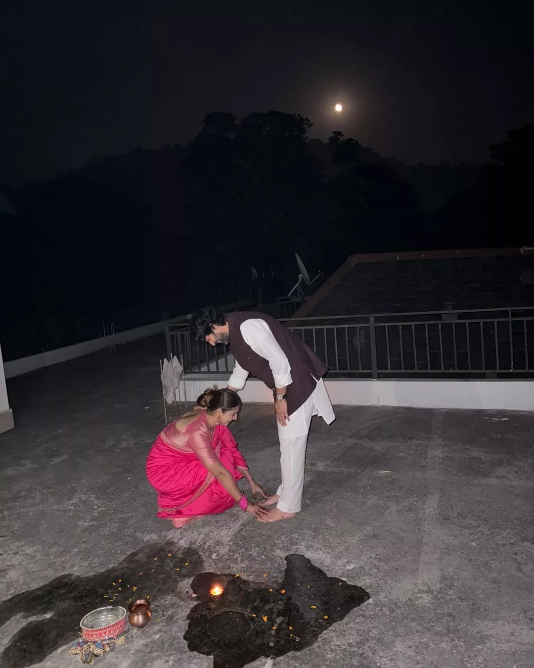 Vikrant Massey touches his wife, Sheetal’s feet as she keeps nirjala vrat on Karwa Chauth